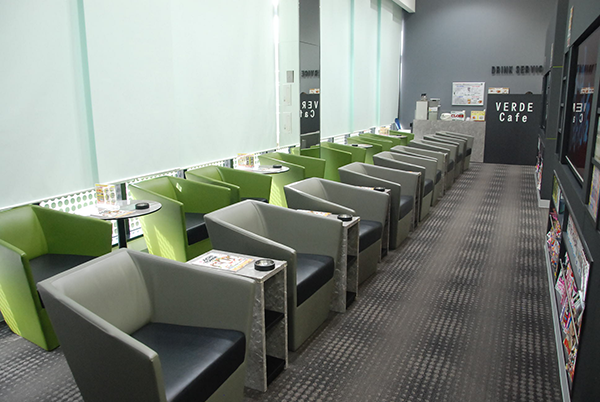 シックなデザインのレストコーナーにはマンガ本などが多く、いつでもゆったりと休憩ができるといった印象を受けた。
