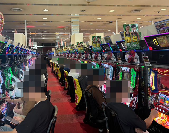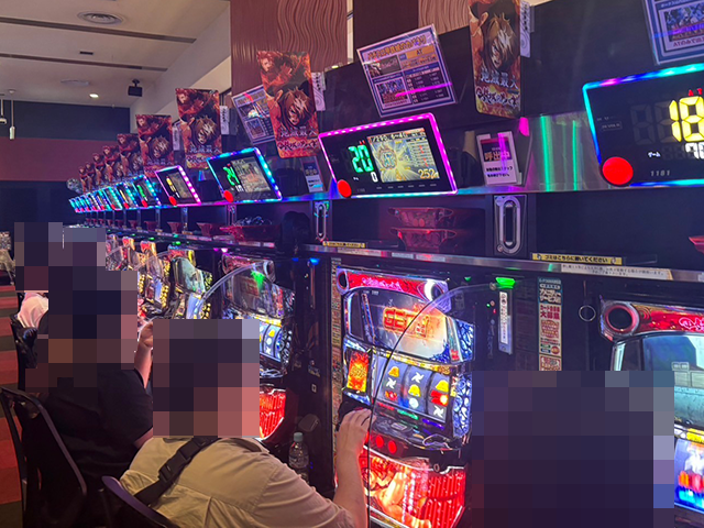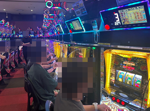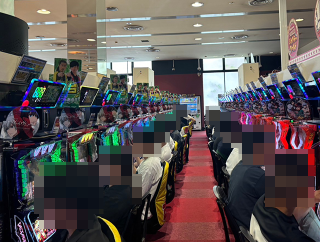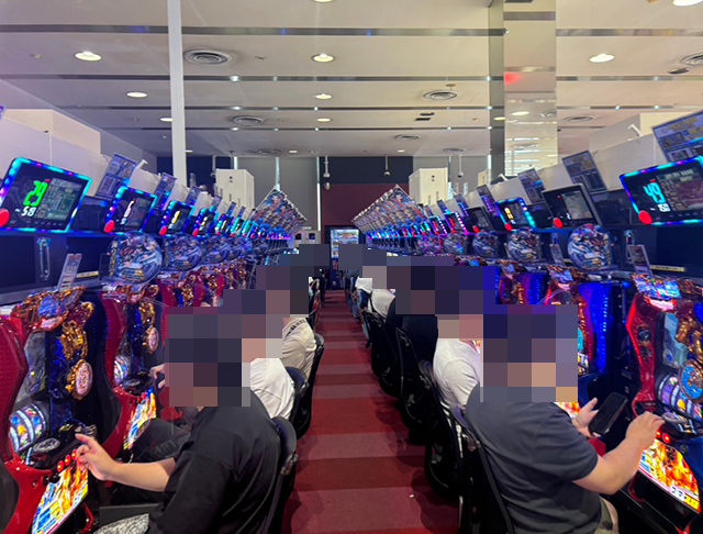 「スマスロ北斗の拳」や「チバリヨ2」にも遊技を満喫しているといった姿があり、どちらの機種でも7,000pt以上となっている台を確認。