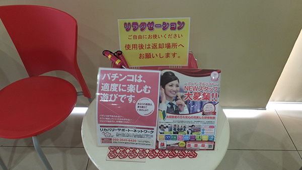 レストコーナーにはリラクゼーショングッズも用意しており、年配プレイヤーの気持ちに沿ったサービスを提供するなどサービス面も充実していた。