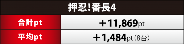 『スマスロ北斗』に次ぐ平均ptを見せたのが『番長4』8台。8台中4台と全体の半数が勝利し、1,000overは3台、696番台が+9千1百超となった他、+3千超が2台輩出された。
