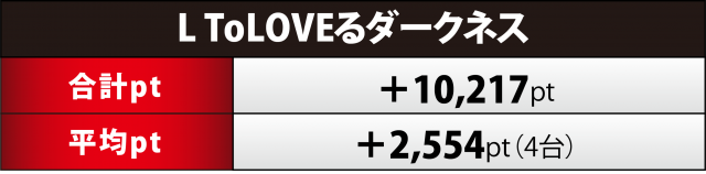 4台と少なめの設置ながら今回最も高い平均ptを成立させたのが『ToLOVEる』。4台全てが勝利&3台がプラス4桁、706番台が+6千5百超という差枚数を弾き出した。