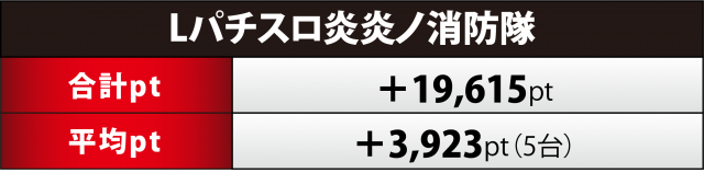 『Lパチスロ炎炎ノ消防隊』5台は+2万手前とこちらもハイクオリティ。うち4台が勝利と全体の8割&4桁プラスが3台となる高水準の上に、793番台が+1万1千超と万枚を超えた他に+8千5百超が続き、こちらも『からくりサーカス』に勝るとも劣らない好況となった。