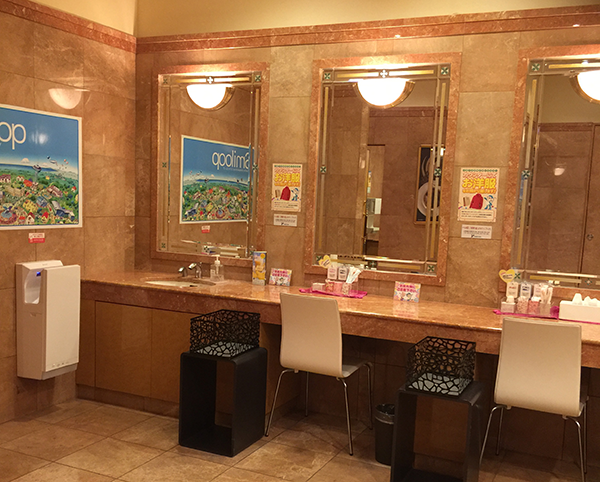 また、遊技台の周辺だけでなく、休憩の設備なども充実。女性用のトイレには、各種アメニティグッズやパウダールームが用意されているため、女性のプレイヤーも気がねなく来店できそうだ。