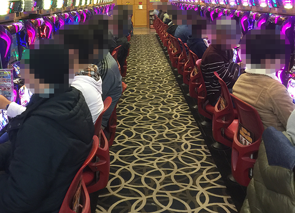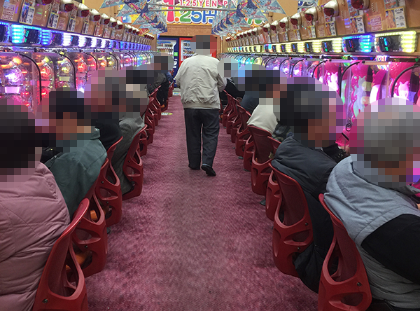 1.25円パチンコの稼働率も高く、ほぼ満席といった状況。