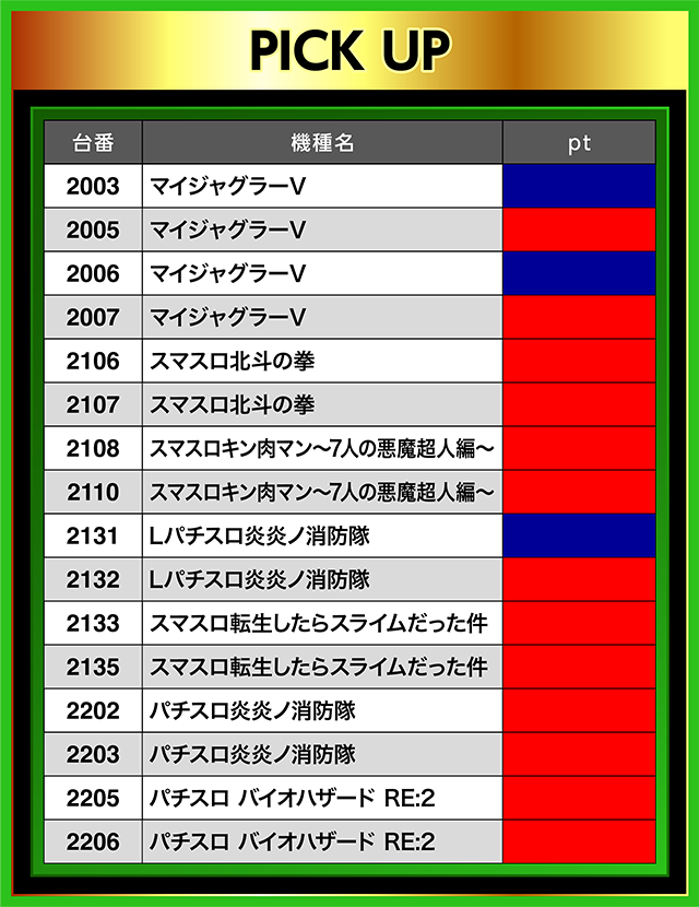 複数の機種にわたって優秀台が並んでいたり、5台連続でプラスとなったりと、魅力的な要素が盛りだくさん!!