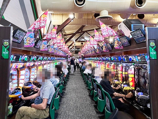 店内では貸し玉料金を問わず様々な機種で、心ゆくまで楽しむプレイヤーの姿が見られた。
