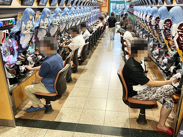 店内には老若男女を問わずプレイヤーが集合。パチンコ・パチスロの各シマから活気が感じられた。