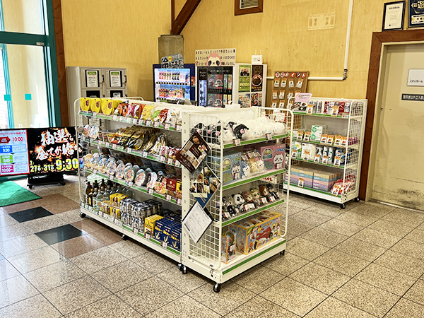 景品コーナーにはお菓子やインスタント食品、おもちゃなど多彩なアイテムが並んでおり、プレイヤーたちの興味を引いていた。