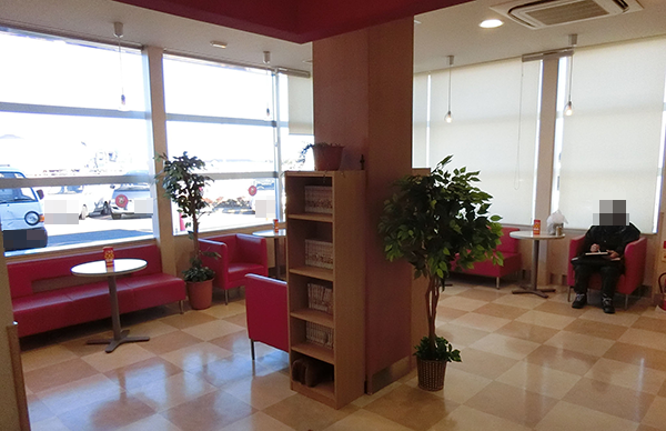 外からの光がはいるレストスペースには、観葉植物が置かれており、さわやかな印象。軽食の自動販売機や漫画本も設置されているため、休憩時間も有意義に過ごせそうだ。
