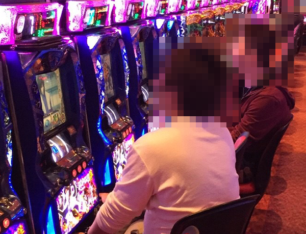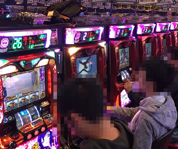 2.5円パチスロもほぼ満席といった状況。