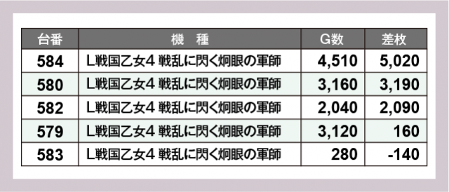 ※差枚数順に掲載しています