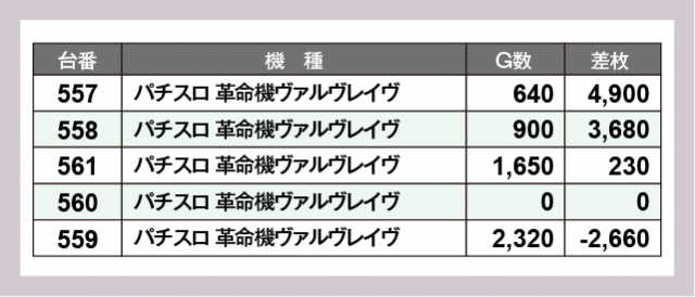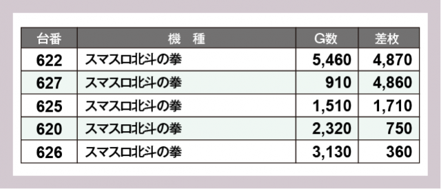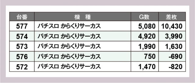 ※差枚数順に掲載しています