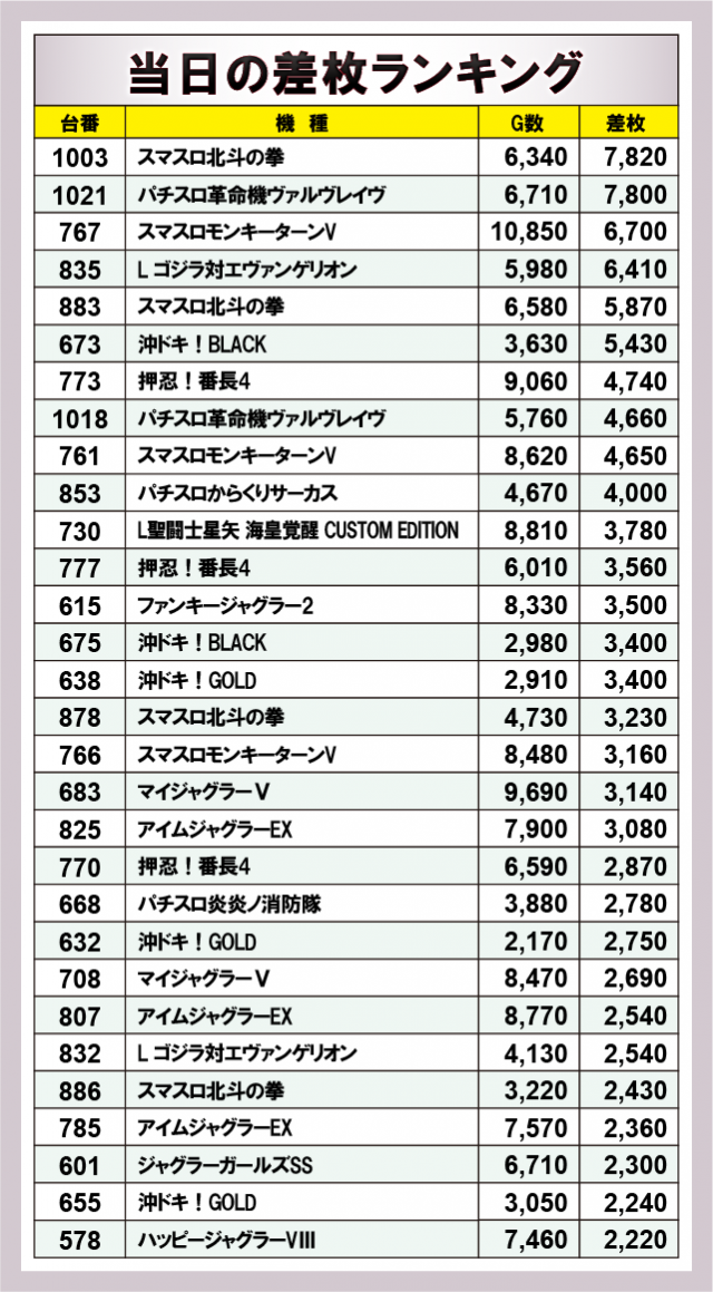 『スマスロ北斗の拳』『パチスロ革命機ヴァルヴレイヴ』といった大人気機種を筆頭にスマスロの活躍が目立つばかりか、最新台『沖ドキ!BLACK』や『ジャグラー』シリーズも好成績をマークしており、各所で打ちごたえのある状況が整っていたことが窺える。