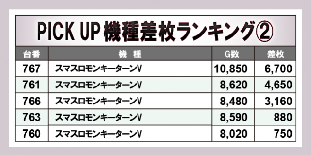 当日は上表の6機種が大きく盛り上がっていた様子だ。特に『スマスロモンキーターンV』では万回転を記録しており、しっかりと打ち込まれた形跡が見られるのが好感を覚えるポイントだ。全体を通してみても、回転数の多さがファンの自信のほどを窺える。