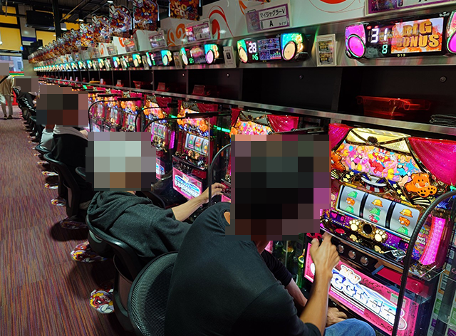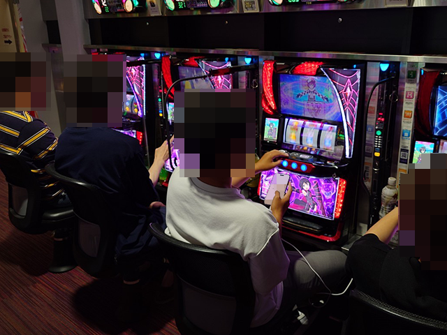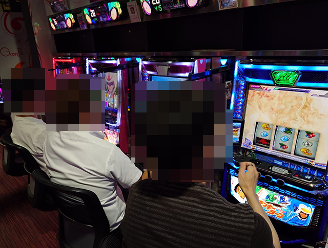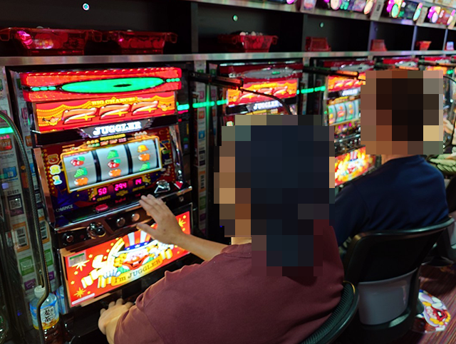 『マイジャグラーⅤ』はとくに稼働率が高く、楽しそうなプレイヤーも多い。