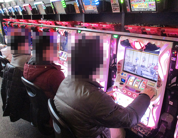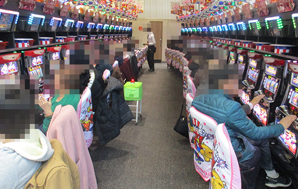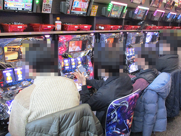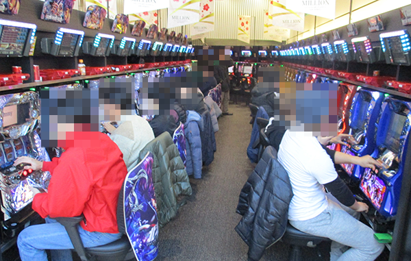 「SLOTバジリスク〜甲賀忍法帖〜Ⅲ」や「ミリオンゴッド-神々の凱旋-」も稼働率が高く、にぎやかな雰囲気につつまれていた。