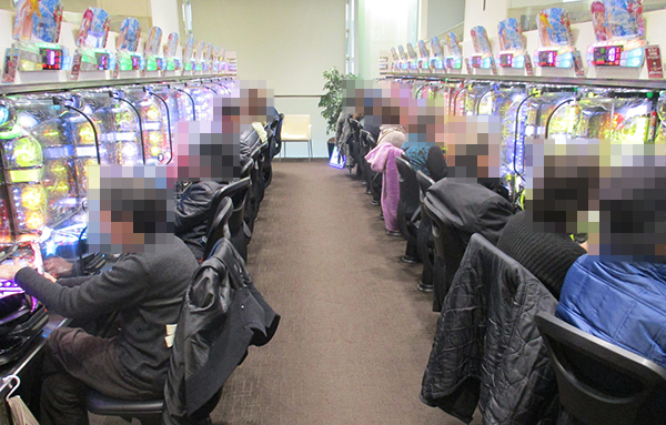 開店を迎えると、パチンコとパチスロをあわせて、たくさんのプレイヤーが入場していった。