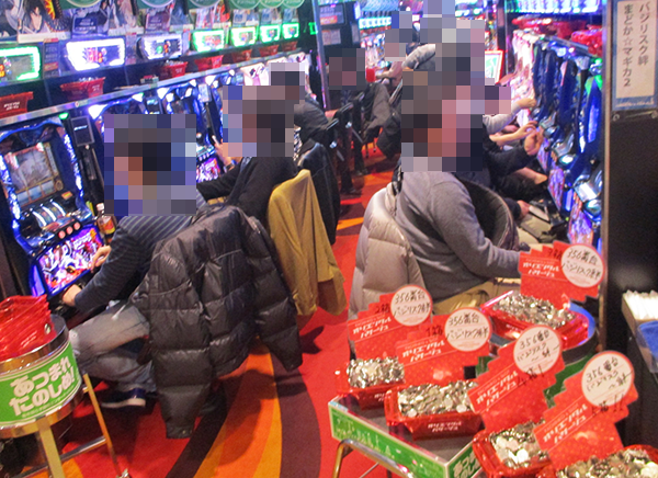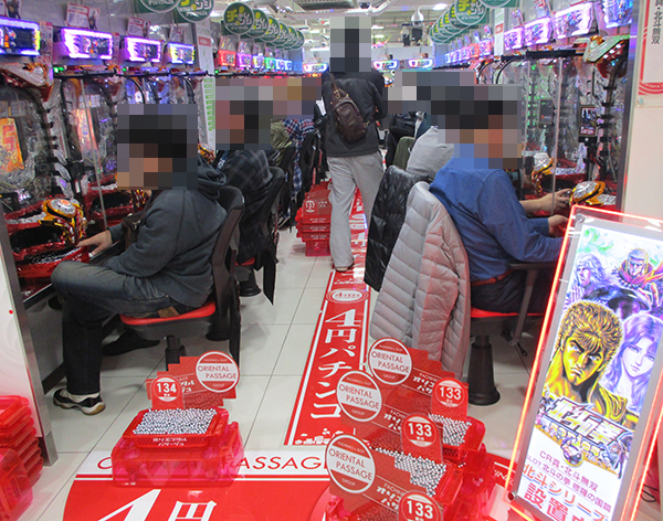1円パチンコも人気で、海物語シリーズや「CRリング 運命の日」といった、さまざまな機種が楽しまれていた。