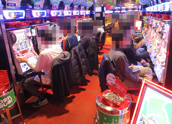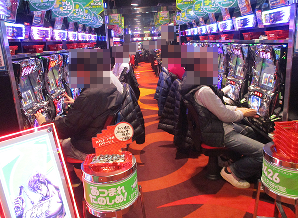 スタッフが明るい笑顔で接客をおこなっているホール内では、大勢のプレイヤーが遊技を楽しんでいた。
