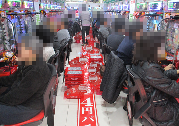 午後の4円パチンコをみてみると、パチンコフロアのいたるところから活気が感じられた。