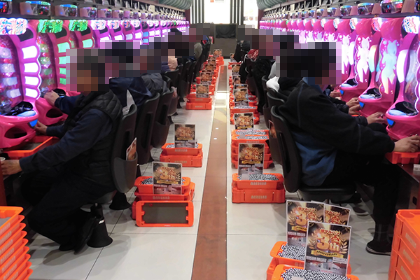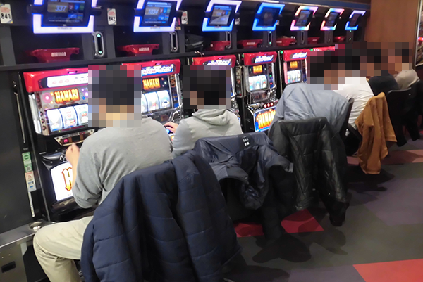 パチスロでは、「バジリスク~甲賀忍法帖~絆」と「アナザーゴッドハーデス」がほぼ満席。活躍するプレイヤーたちによって、シマ内には鮮やかな光景が広がっていた。