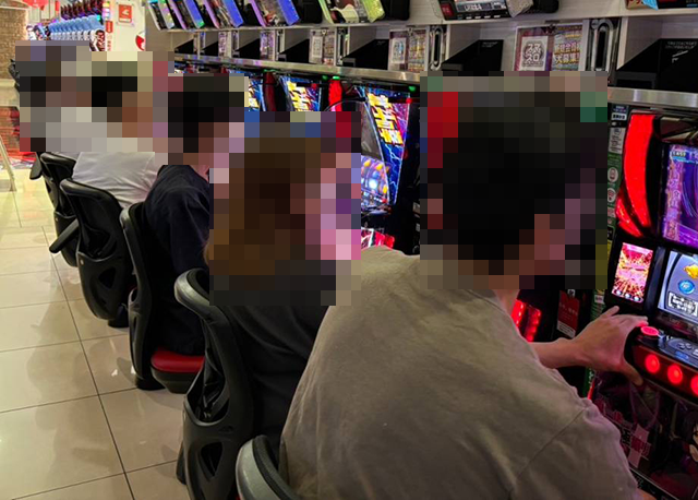 15時過ぎのパチスロでは、「スマスロ北斗の拳」が満席に近く、にぎわいも大きい。