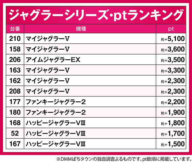 「マイジャグラーⅤ」の210番台が約+5,000ptオーバー!!