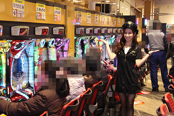 隣のお客さまと楽しそうに遊技するゆうこちゃん♪