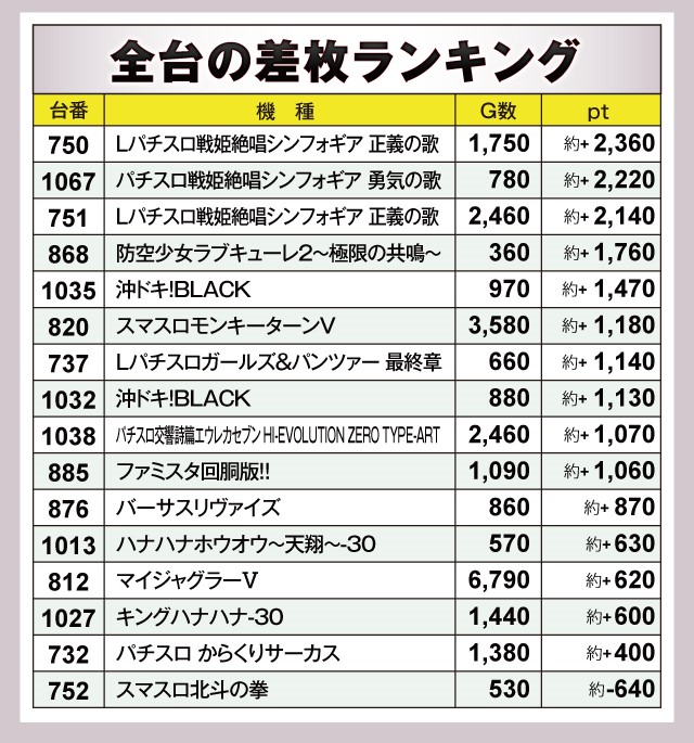 さらに1067番台『パチスロ戦姫絶唱シンフォギア 勇気の歌』も2千pt越えなど、新旧のシンフォギアが大活躍だったようだ。