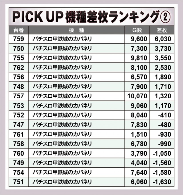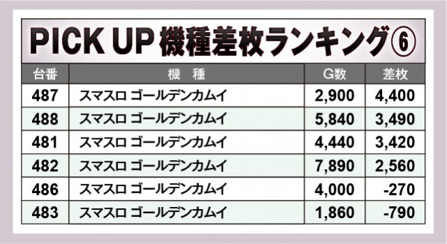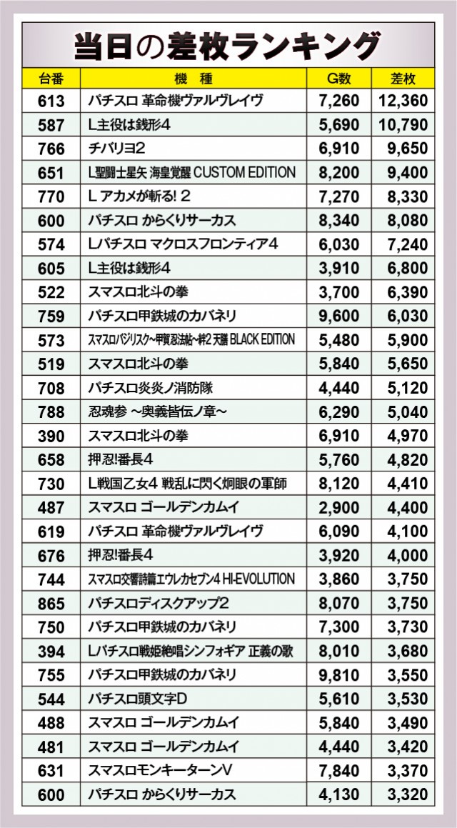 ※差枚数順に掲載しています。
