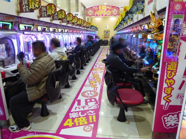 1円パチンココーナーも大人気。真っ白の筐体が目を引く「CR花の慶次X~雲のかなたに~」や、人気の高い「CR牙狼 魔戒ノ花」でも稼働が見られ、ハイスペック機種特有の大きな展開を期待していたようだ。