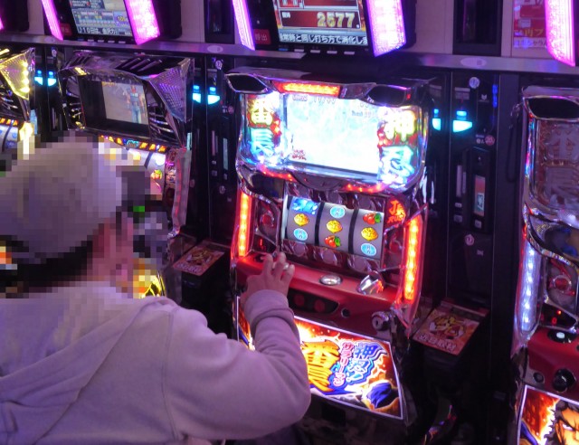 20円スロットコーナーにおいては、「押忍!サラリーマン番長」が注目を集めるパフォーマンスを披露するプレイヤーを確認、満足気な表情をのぞかせていた。