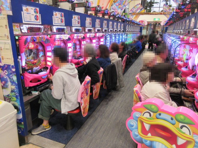 ほかにも、「CRスーパー海物語IN沖縄4マリンシェルビビッドピンクバージョン」が高稼動で、明るくあでやかなライトに照らされた一帯は華やかな雰囲気をかもし出していた。