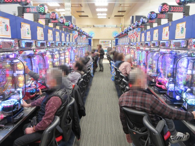4円パチンココーナーでは、花の慶次シリーズの最新台「CR花の慶次X~雲のかなたに~」の人気が高く、あらゆる年代層のプレイヤーが遊技を楽しんでいた。