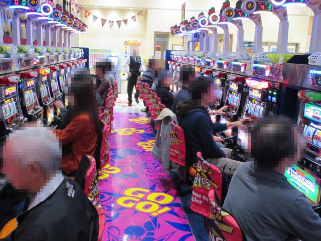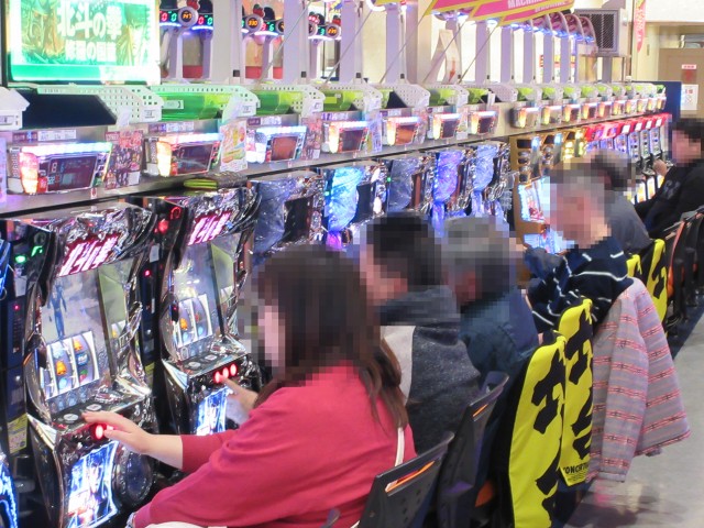 根強い人気の「ファンキージャグラー」や「ニューアイムジャグラーEX」では、スムーズで快適な遊技を心行くまで楽しんでいるのがこちらにまで伝わってきたのが印象的だった。