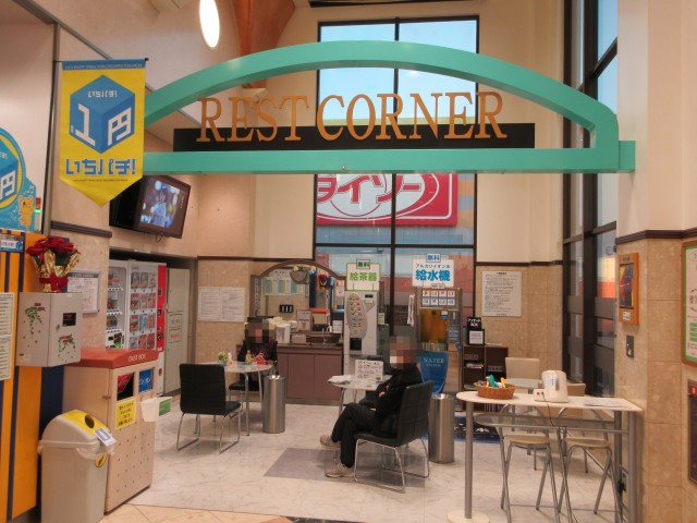 店内にあるレストコーナーはプレイヤーに大人気。安らぎの空間でゆったりと休憩できるようだ。また、USB充電機器に対応したスマホ充電器”ユーフォーバッテリー”を導入してのサービスなど工夫を凝らしている。