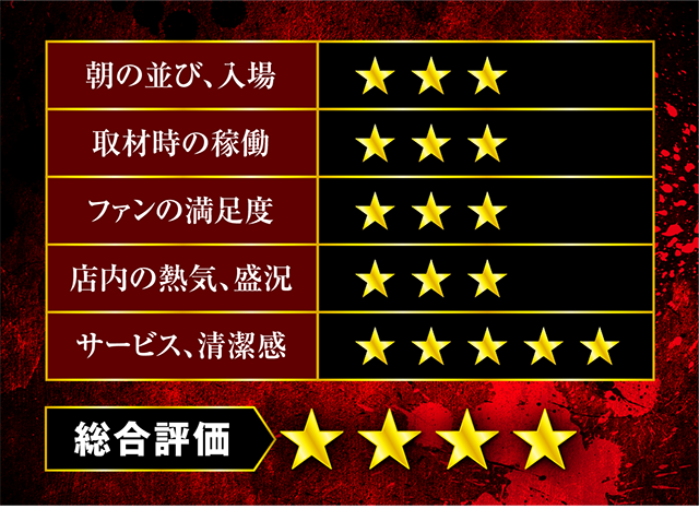 どのスタッフも笑顔で接客をしていたり、遊技台のまわりからレストスペースまで清掃が行き届いていたりと、多彩な魅力が感じられるホールだ。