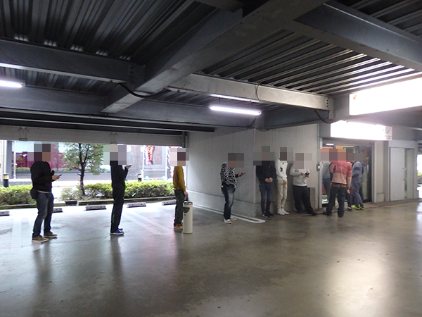 開店前には約30名のプレイヤーがホール前に集合。開店を心待ちにしているような姿が多く、朝イチから活気も感じられた。