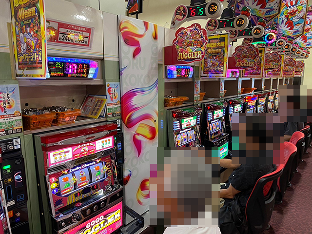 取材の時点で、「ゴーゴージャグラー3」と「ハッピージャグラーVⅢ」の両方に、ボーナス回数が30回以上の台があった。