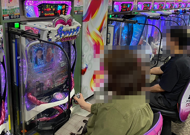「ぱちんこ冬のソナタRemember Sweet GORAKU Version」で遊技中のプレイヤーも楽しげ。