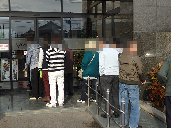 朝イチには約20名のプレイヤーがホール前に集合。開店を心待ちにしているような姿が多く、ホールへの期待も大きそうだ。