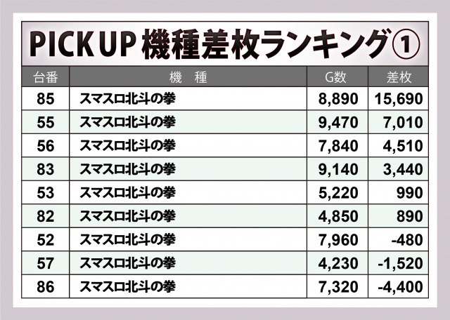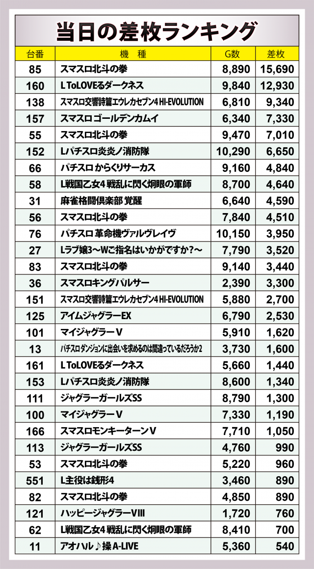 ※差枚数順に掲載しています。