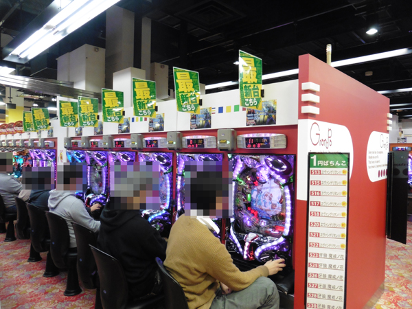 パチンコは4円、1円、0.5円、パチスロは20円という4種類のレートを用意。取材当日は貸し玉料金を問わず、店全体が活気づいていた。