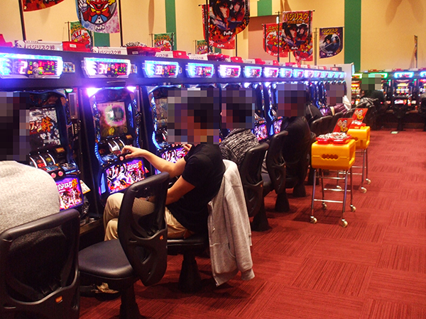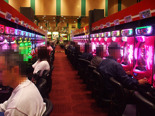 パチスロコーナーでは、至る場面で華やかな光景が広がっていた。