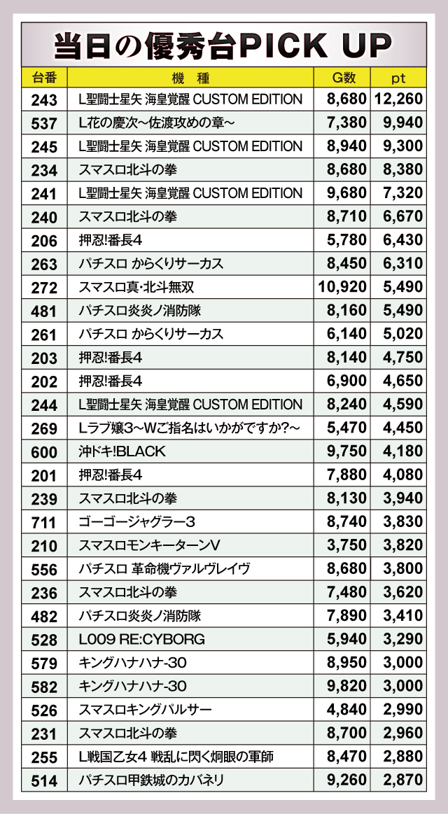 ※差枚pt順に掲載しています。