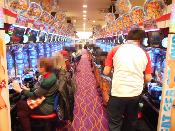 「CRヱヴァンゲリヲン9」や「CRまわるんパチンコ大海物語3」も好調な台が多く、嬉しそうに遊技している表情が印象に残っている。このホールではどちらも大量に導入されている機種であるが、空き台を探すのが大変なほど人で埋め尽くされていた。