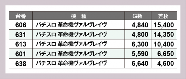 ※差枚数順に掲載しています