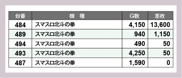 ※差枚数順に掲載しています