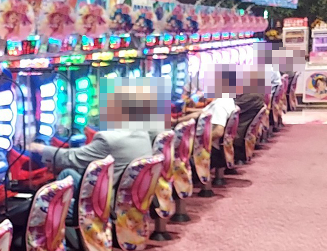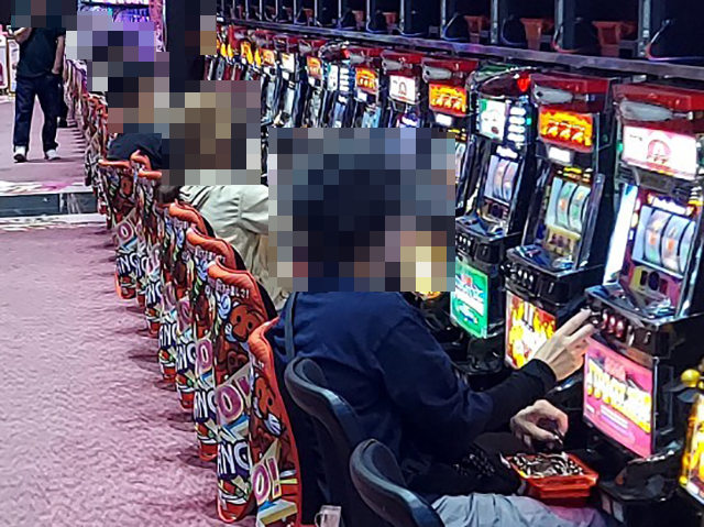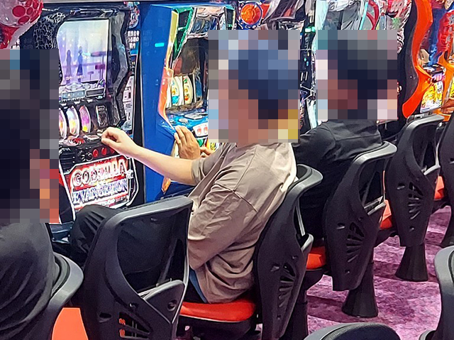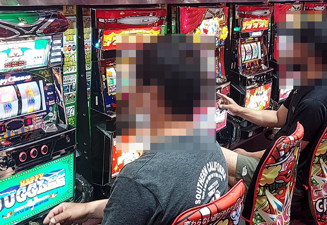 「ハッピージャグラーVⅢ」や「ゴーゴージャグラー3」に、1箱以上の持ち玉を使って遊技をおこなっている姿があった。