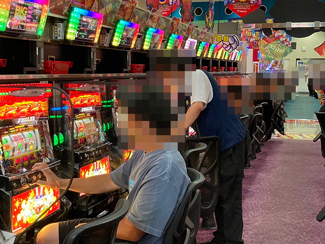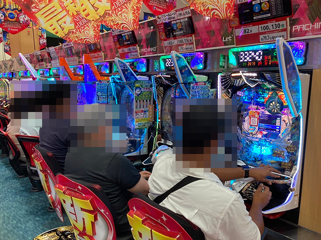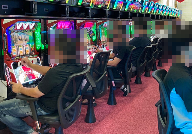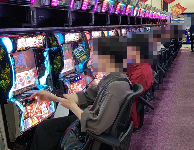 パチンコにおいては、3台設置の「P アズールレーン THE ANIMATION 異次元トリガー」は空き台がなく、晴れやかな表情で遊技をおこなっている姿が並んでいた。